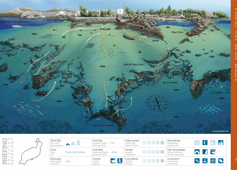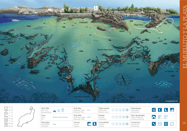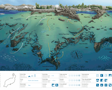 El Veril de Playa Chica es, sin dudas, el sitio de buceo más popular de Lanzarote. Muy fácil acceso al agua pero tambien comodidades que se agradecen mucho: bancos para sentarse y preparar el equipo, baños, duchas de agua dulce y un bar en el que podremos pasar nuestro intervalo de superficies con un café caliente.