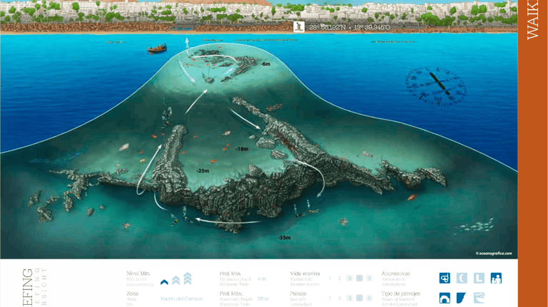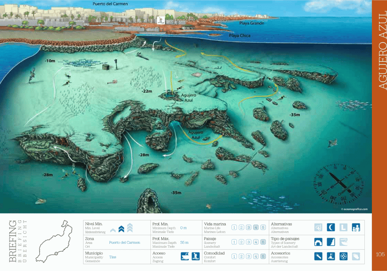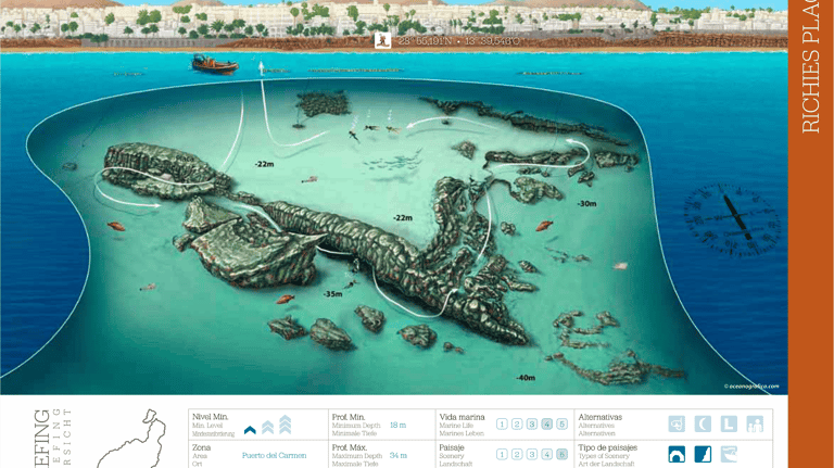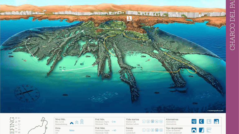 Otra de las inmersiones populares que se pueden hacer desde barco pero muy cerca de la costa. Podria parecer un buceo de pared estandar, pero el recorrido entre medio del cañon la hacen muy especial. Gran oportunidad para ver la vasta biodiversidad de Lanzarote .